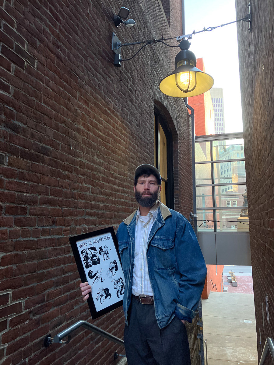 Byron Olson is a Providence, Rhode Island based cartoonist. Born in Providence, Byron draws inspiration from the city, culture and community. He studied at MassArt initially, then transferred to RISD, where he received his BFA in Illustration. He works as a freelance artist and runs his web shop: Strange One Comics, selling art prints and other products. Byron’s artwork is at the intersection of spooky and cutesy, with influences ranging from Stephen King novels, to Fleischer cartoons like Betty Boop. His work evokes a vintage feel with modern sensibilities. Underground and independent comics, punk rock, hip-hop, counter culture and the diy print scene, fuel his passion to create.